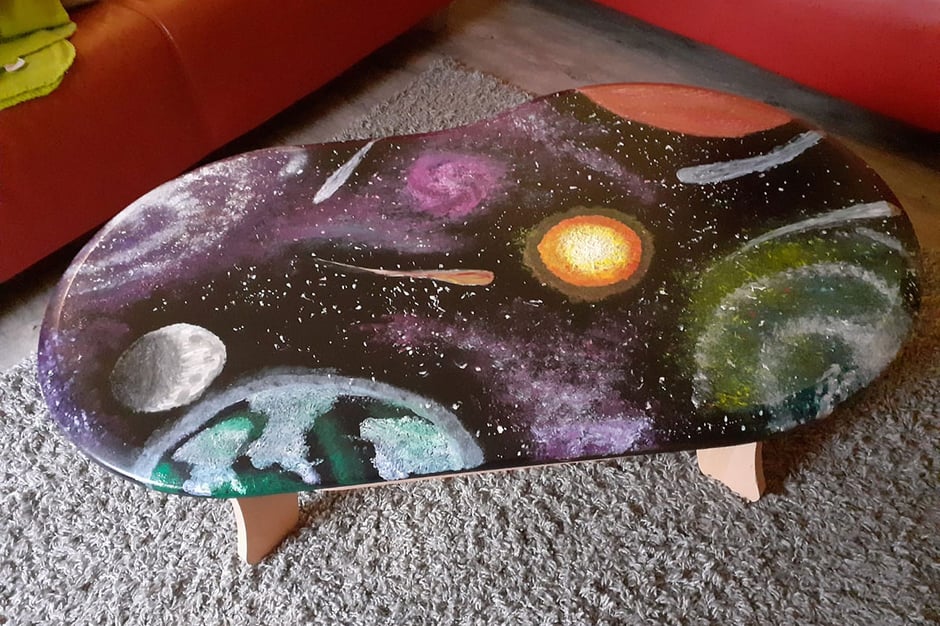 Tagebuch · 17. Dezember 2019 GALAKTISCHE KUNST Da uns Nachhaltigkeit sehr wichtig ist, haben wir unseren in die Jahre gekommenen Wohnzimmertisch nicht entsorgt, sondern verschönert! Unser Erzieher Marvin hat dieses spontane Projekt gemeinsam mit den Kindern umgesetzt. Seht selbst ... tagPlaceholderTags: