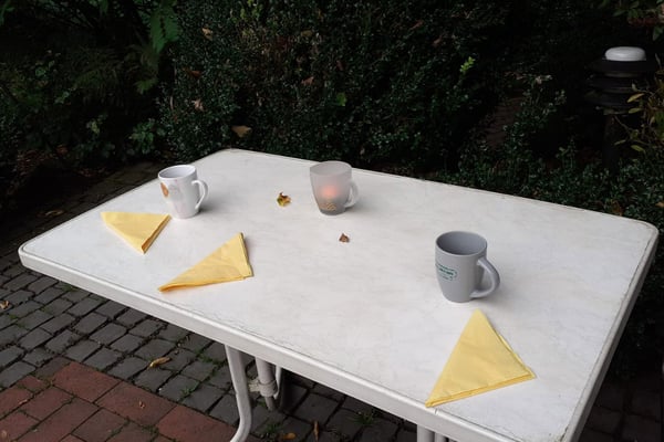 Da Beschäftigung an der frischen Luft immer eine gute Idee ist und unser Bub sich Feuer in der Feuerschale gewünscht hat, wurde kurzum beschlossen, das Frühstück nach draußen zu verlegen.