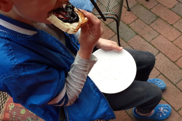 Mit Hilfe einer langen, feuerfesten Grillzange und Grillhandschuhen durften die Kinder ihr Toastbrot über dem Feuer rösten und dann mit leckerer, und logischer Weise, selbstgemachter Marmelade verspeisen. Und während die Wärme der Feuerschale unsere Hände gewärmt hat, hat der Tee uns von innen in einen wohligwarmen Zustand versetzt.