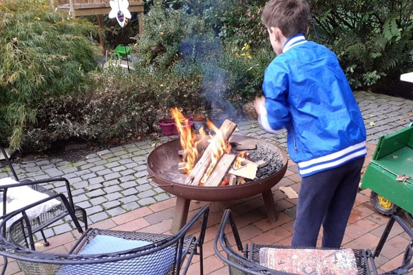 Vorab: Selbstverständlich wird die Feuerschale immer und ausschließlich in Anwesenheit eines Erziehers genutzt!