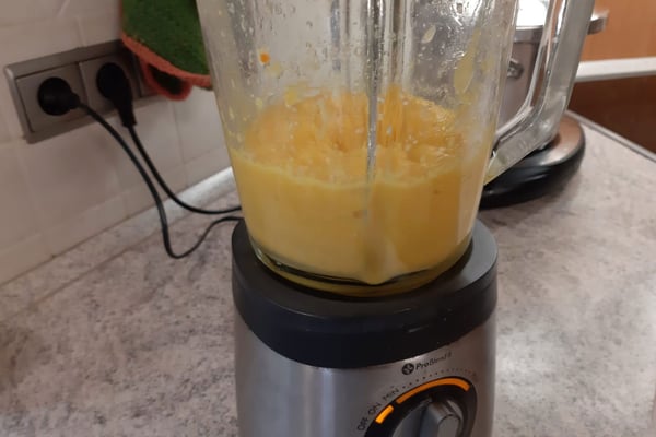 - Dann wird der Kürbis zu einer glatte Masse püriert