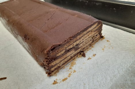 "Kalter Hund" oder auch "kalte Schnauze" kennen und lieben viele Leute. Dabei werden klassischerweise Butterkekse und Kakaomasse in einer Kastenform aufeinander geschichtet und das Ganze lässt man dann im Kühlschrank hart werden.